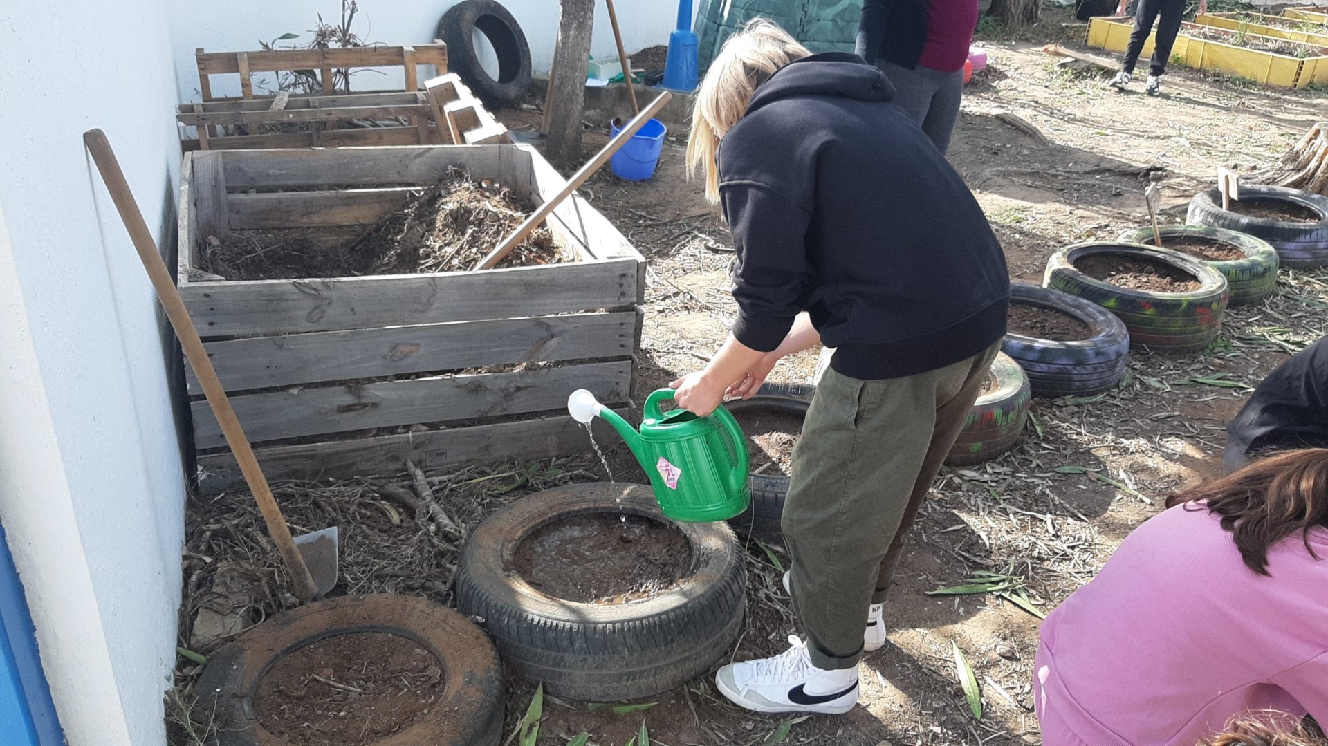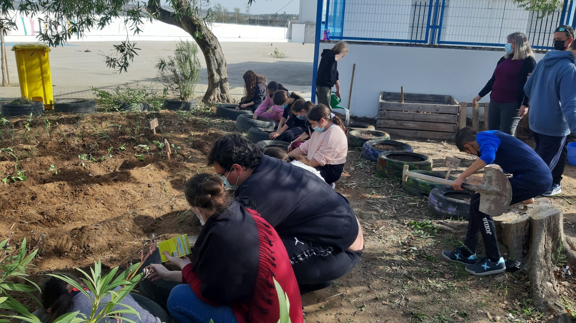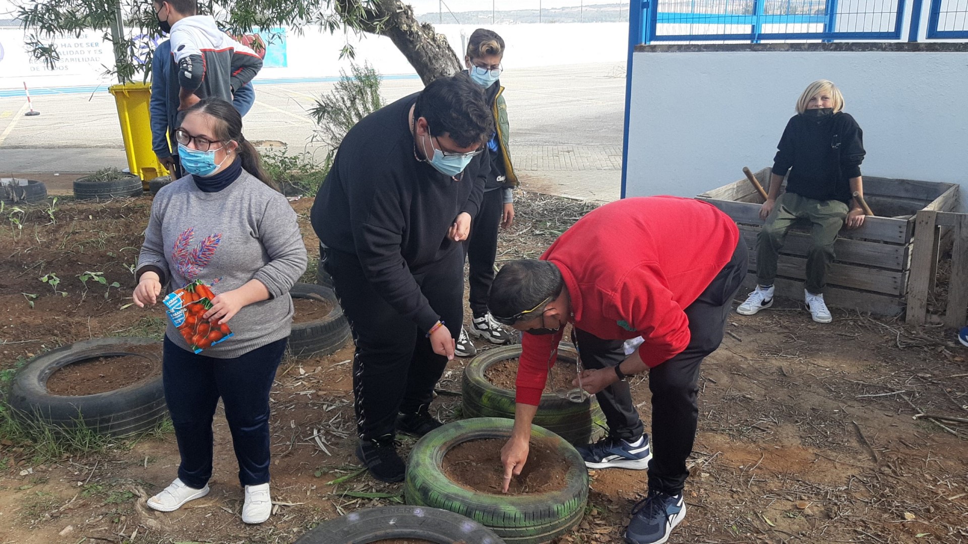 «Justo antes de irnos de vacaciones, el pasado 23 de diciembre, los alumnos sufrieron un fervor verde. El profesorado responsable del programa aldea, desde el cual trabajamos la línea del Ecohuerto, les propusimos a parte del alumnado asistente que aprendieran ese día de una forma diferente: mediante la siembra de distintas verduras y hortalizas en el huerto del centro, y ellos no lo dudaron. Estudiantes que se convirtieron por un momento en hortelanos cuyos resultados se verán en unos meses, pero a juzgar por las fotos, consiguieron la combinación perfecta que tanto buscamos en la enseñanza: aprendizaje, buen ambiente y trabajo duro. ¿Hay futuro? No, yo diría que hay presente.»