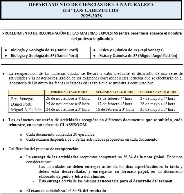 RECUPERACIÓN DE MATERIAS PENDIENTES